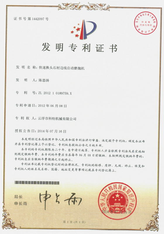 企業(yè)組建了“云浮市石材機(jī)械裝備工程技術(shù)研究開(kāi)發(fā)中心”,并與高校和科研院所密切合作,致力于光機(jī)電一體化產(chǎn)品的研發(fā)、生產(chǎn)、銷售和服務(wù)。主要產(chǎn)品有框架鋸、全自動(dòng)連續(xù)磨拋機(jī)、橋式自動(dòng)切割機(jī)、全自動(dòng)仿形石線機(jī)、數(shù)控金剛石繩鋸、裁切機(jī)等。產(chǎn)品具有自動(dòng)化程度高、加工精度高和生產(chǎn)效率高等特點(diǎn)。產(chǎn)品除國(guó)內(nèi)銷售外,還出口到歐美、東南亞、韓國(guó)、印度、中東、非洲、俄羅斯、澳大利亞等國(guó)家和地區(qū),深受用戶好評(píng)!皹蚴阶詣(dòng)切割機(jī)”被認(rèn)定為廣東省高新技術(shù)產(chǎn)品,擁有發(fā)明專利1項(xiàng)、實(shí)用新型專利1項(xiàng)。